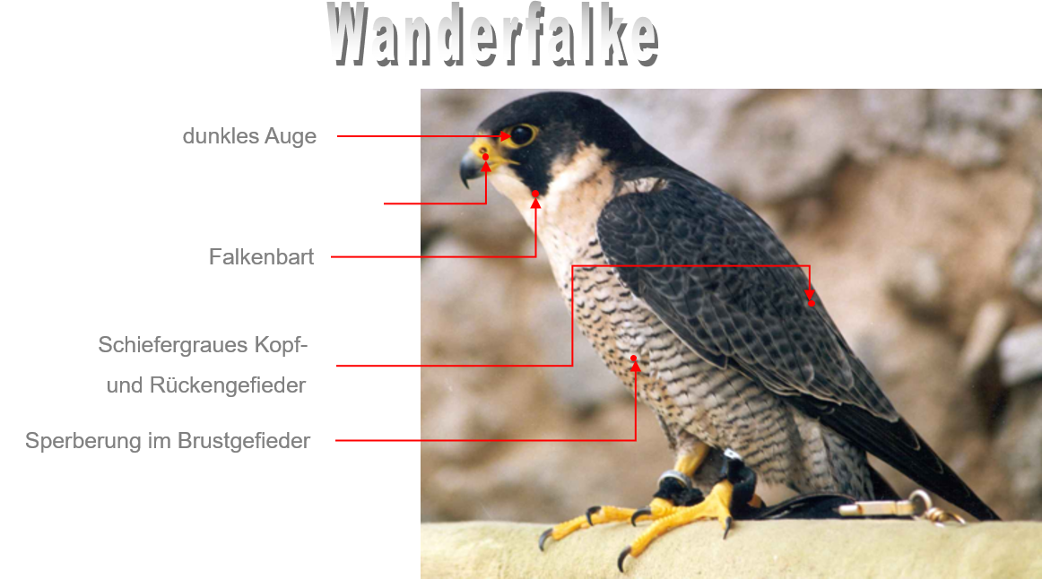 Die Wachshaut und der Augenring sind blaugrau; beim Küken ebenfalls die Beine. Wanderfalken mausern