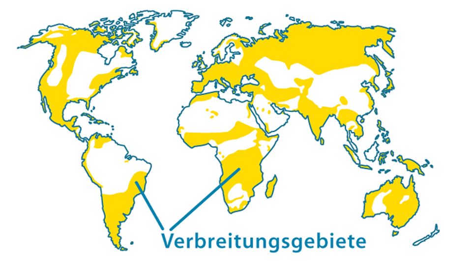 außerdem die ariden Zonen Amerikas, Afrikas und im Inneren Australiens.